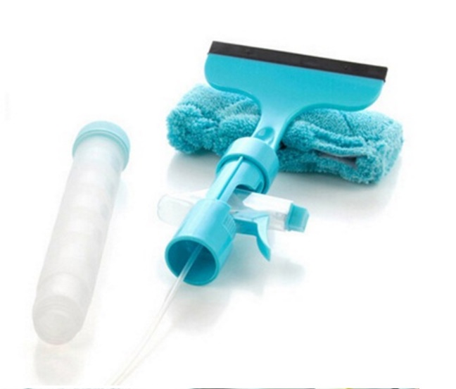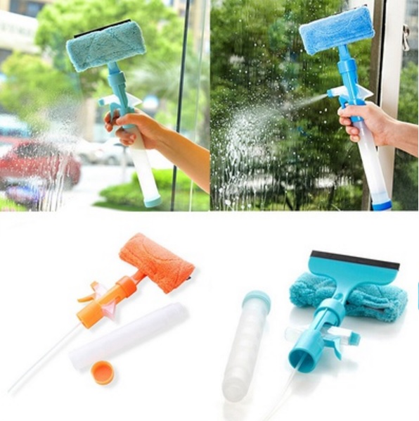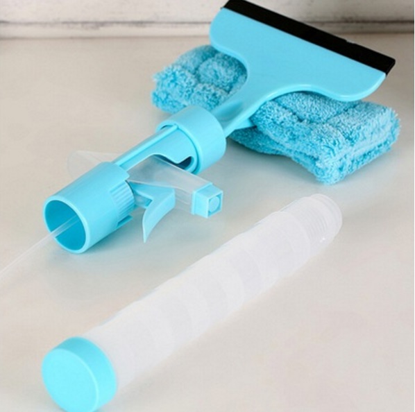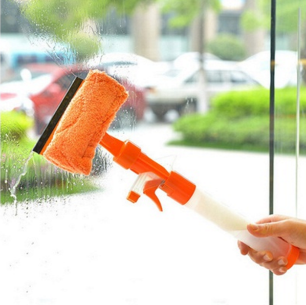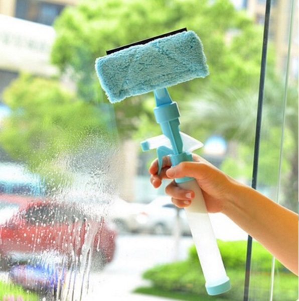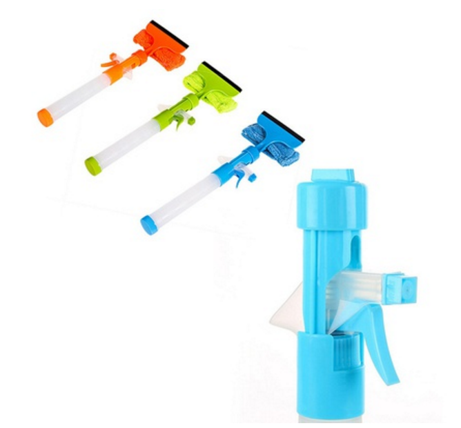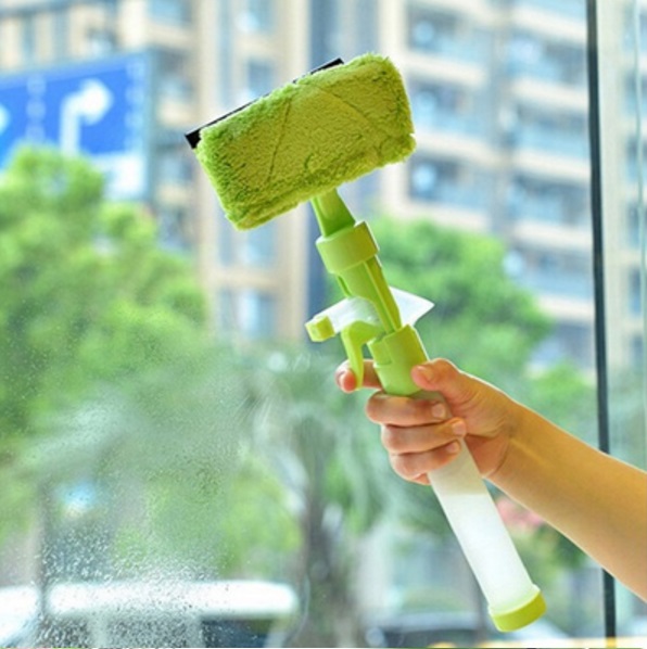 Nádržka na tekutinu a rozprašovač v rukoväti pomáhajú s aplikáciou čistiaceho prostriedku a vody na okno.