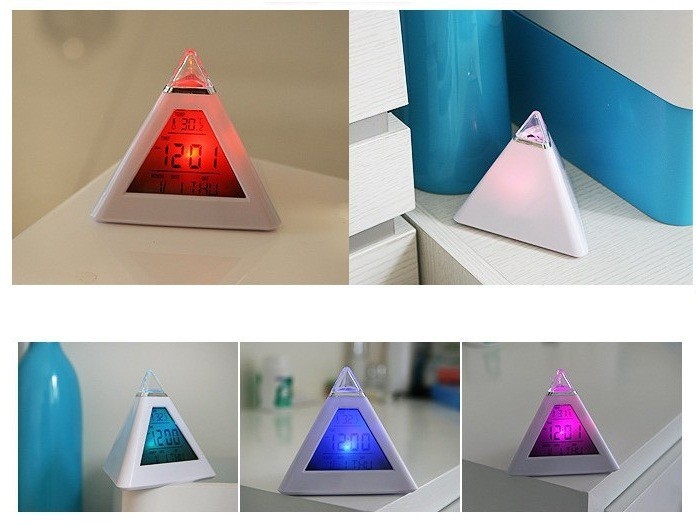 Tento budík v tvare pyramídy s meniacimi sa farbami bude vynikajúcou voľbou.