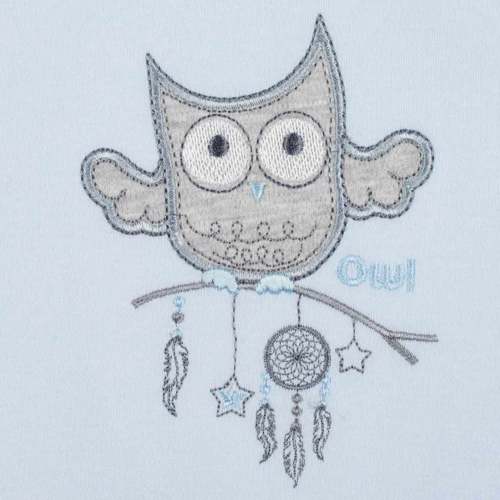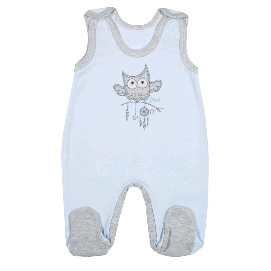 Praktické dojčenské dupačky New Baby Owl pre bábätká. Dupačky sú zdobené vyšitým obrázkom sovy a lapačom snov. Obrázok je z vnútornej strany podlepený podšívkou proti poškriabaniu. Okolo krčku a ručičiek majú sivý lem. Zapínanie na ramienkach a medzi nožičkami. Pri akomkoľvek pohybe je chrbátik bábätka stále prikrytý. Zloženie: 100% bavlna.