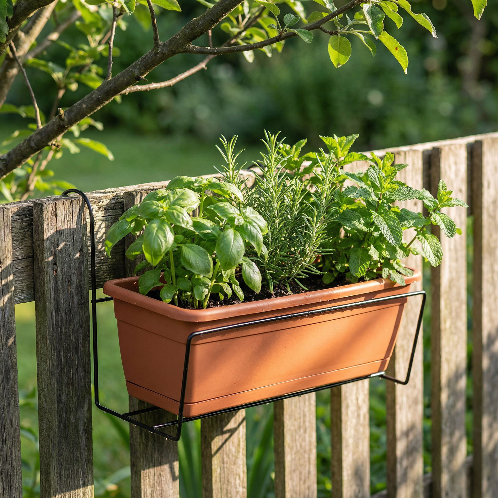 Držiak na truhlík - kov, čierny - na zábradlie - 40 x 22 cm