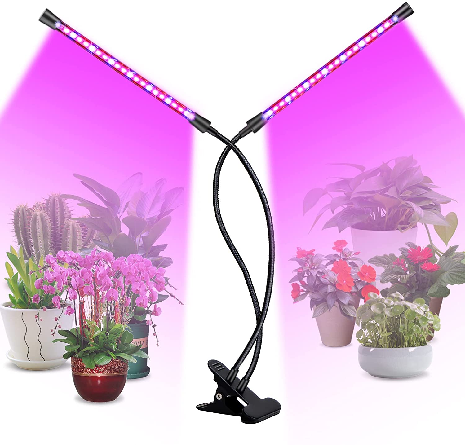 2 svetelné hlavy – 2 nastaviteľné, o 360° otočné svietidlá na rastliny poskytujú oveľa širšie pokrytie na podporu rastu rastlín, s 15-palcovým ramenom, ktorý vám umožňuje stabilne a voľne nasmerovať svetlo v danom smere.
