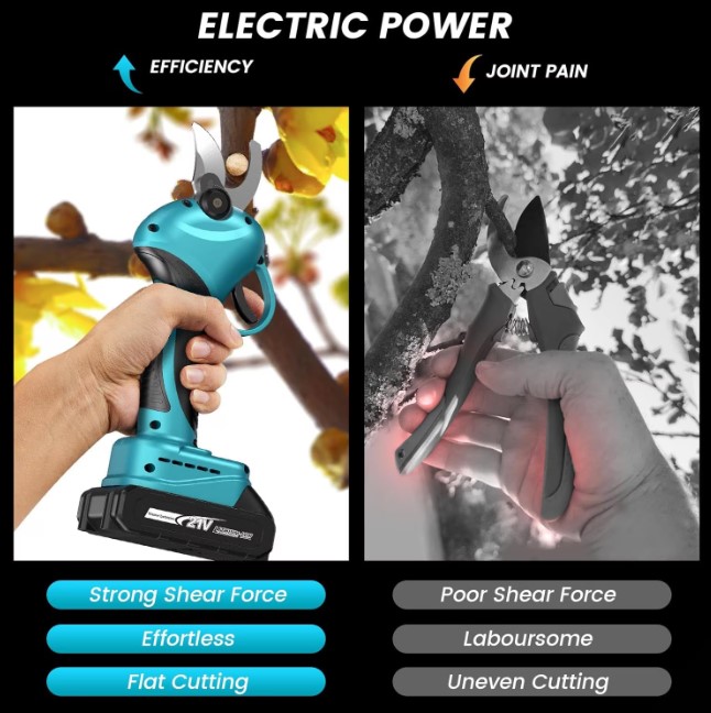 Akumulátorové záhradné nožnice vám umožnia rýchlo a efektívne strihať vinnú révu, ovocné stromy, živé ploty a kríky.