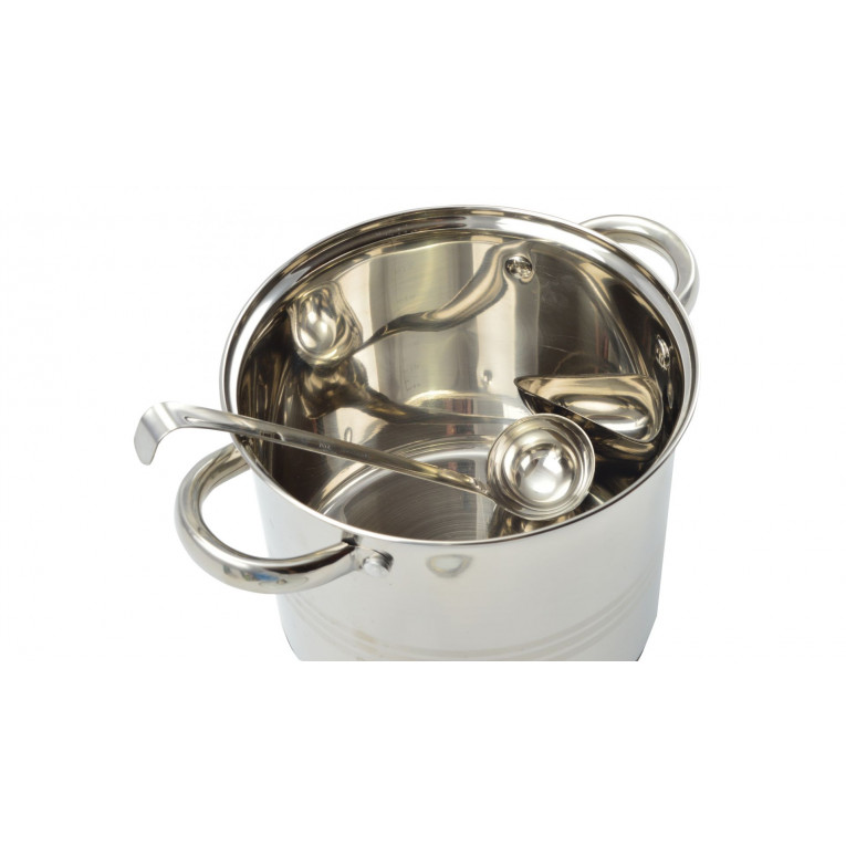 Materiál: nehrdzavejúca oceľ Rozmery: hlava s priemerom 6 cm; rukoväť: 24 cm Objem: 60 ml Hmotnosť: 85 g Čistenie: umývajte neutrálnym tekutým čistiacim prostriedkom na riad. Vyhnite sa používaniu prostriedkov a nástrojov, ktoré môžu spôsobiť poškriabanie.