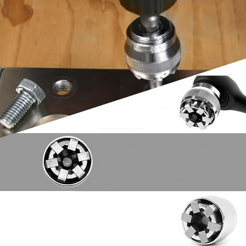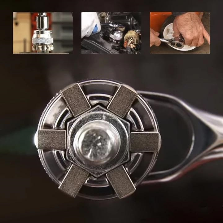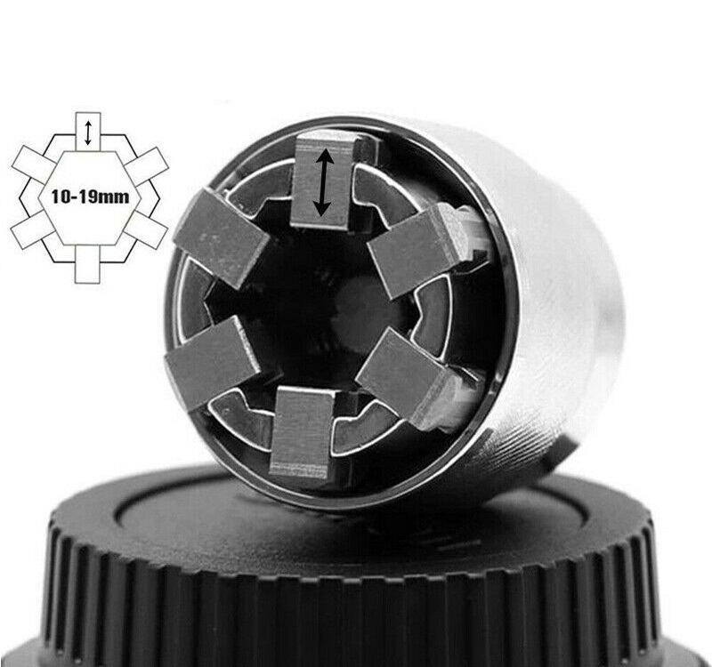 Už viac nemusíte skúšať rôzne veľkosti rúrkových kľúčov. Nastaviteľná hlava rúrkového kľúča je použiteľná pre skrutky s veľkosťou 10-19 mm, takže nemusíte meniť kľúč. Vďaka svojmu dizajnu vyvíja rovnomernú silu z akéhokoľvek smeru. Je kompatibilná s 3/8" kľúčmi a vhodná pre viac ako 30 rôznych veľkostí hláv skrutiek.