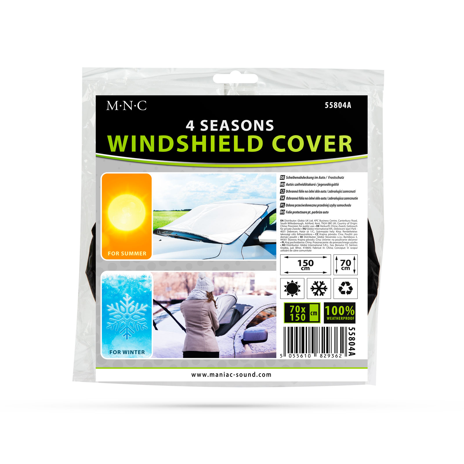 Praktický doplnok pre vaše auto na zimu aj leto. Vďaka tejto ochrannej fólii na čelné sklo môžete zabrániť zamrznutiu vášho čelného skla a sneh môžete tiež jednoducho odstrániť. Vďaka predĺženému vyhotoveniu ju môžete jednoducho pripevniť pri dverách. Pevná kruhová vložka poskytuje dobrú priľnavosť pri odstraňovaní vrstvy snehu. Môžete ju použiť aj v letných horúčavách, pomocou prísaviek ju môžete jednoducho pripevniť aj v interiéri.