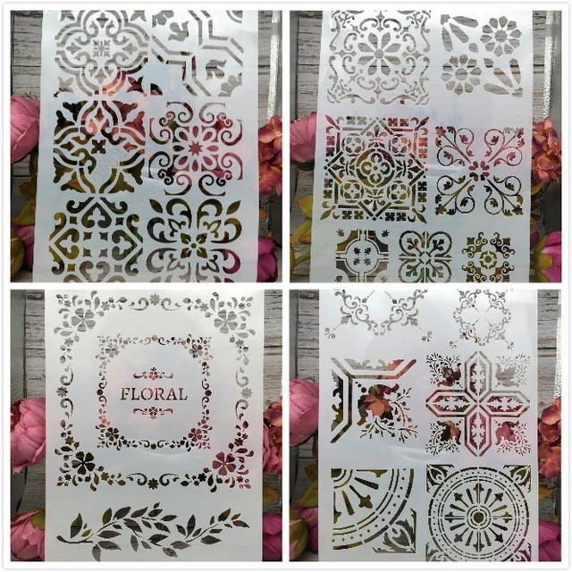 Balenie pozostáva zo štyroch rôznych plastových fólií s čoraz krajšími šablónami. Ich použitie je mimoriadne jednoduché, stačí pritlačiť produkt na očistenú plochu, ktorú chcete natrieť, následne prekresliť tvary alebo natrieť medzery. A hotovo!