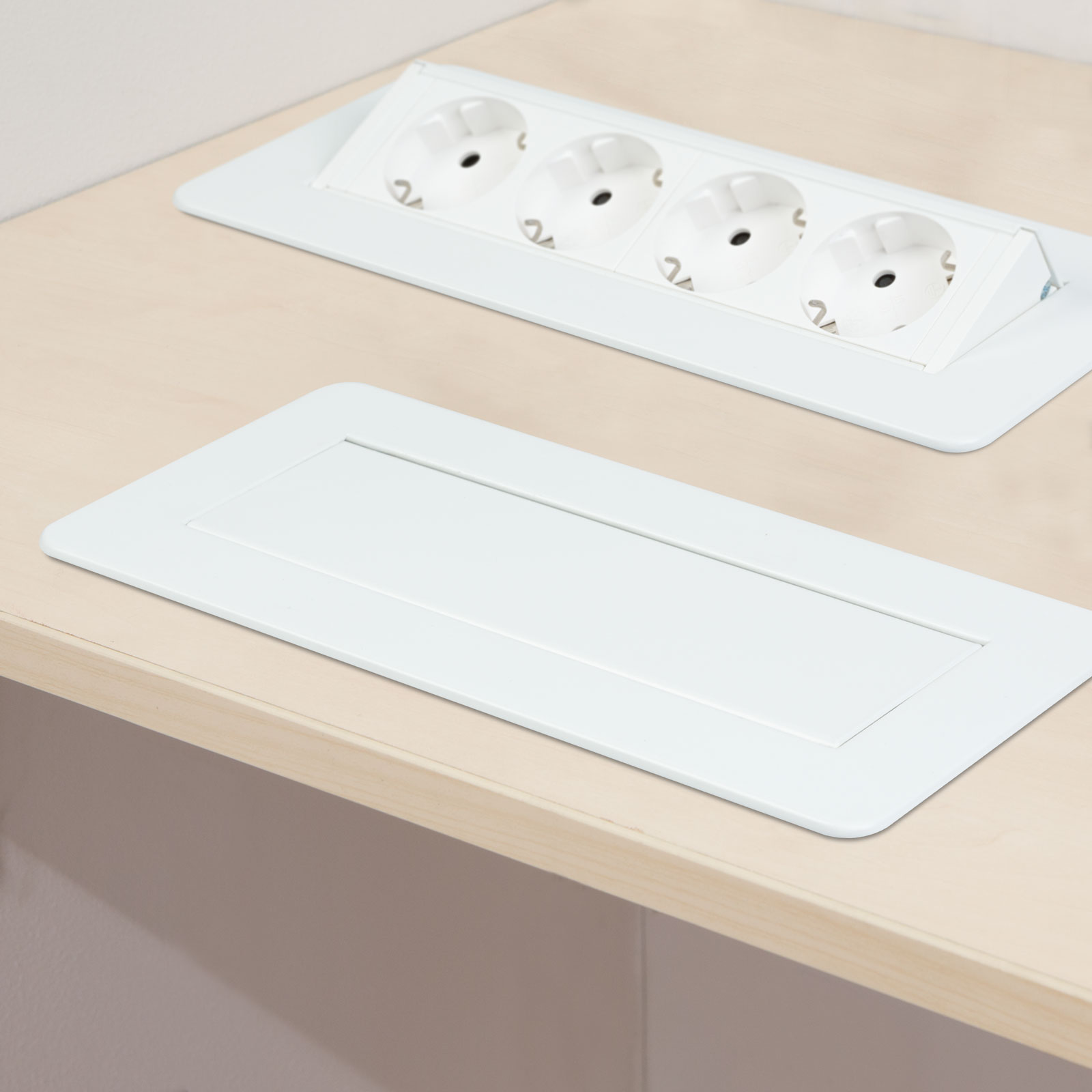 Zápustná zásuvka na kancelárske a domáce použitie s matným bielym povrchom a 4 zásuvkami s detskou poistkou. Váš stôl a nábytok budú vždy elegantné a usporiadané, no zároveň funkčné. Skrytá zásuvka je výborným riešením napríklad do už zariadenej kuchyne, kde nie je dostatok zásuviek na požadovanom mieste. V takomto prípade môže byť zápustná zásuvka skvelou alternatívou bez sekania do stien a rozširovania elektroinštalácie. Jediným pohybom máte k dispozícii 4 voľné zásuvky. Ideálne pre spotrebiče, ktoré nepoužívame nepretržite – hriankovač, rýchlovarná kanvica... Keď sa nepoužívajú, „flip-up“ zásuvku možno jedným pohybom skryť, čím sa uľahčí napríklad upratovanie a zároveň sa priestoru dodá čistý, upravený vzhľad.