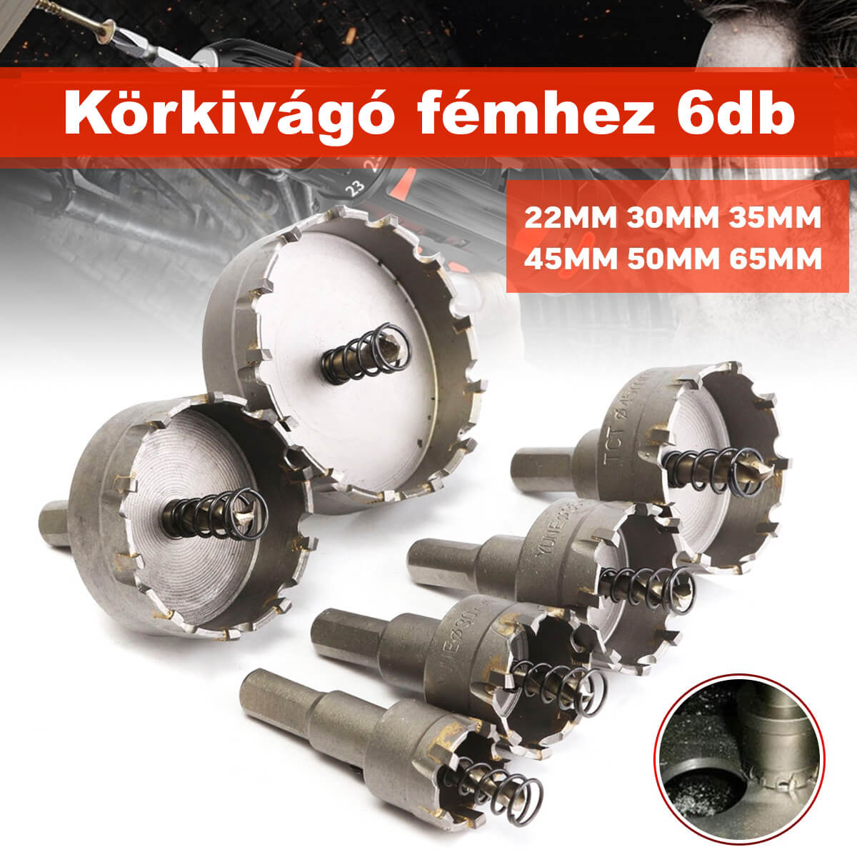 Obsah balenia – Kruhový vyrezávač na kov 6ks vlastnosti: