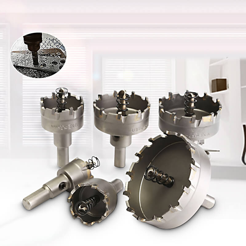 Sada obsahuje 6 kusov kruhových vyrezávačov rôznych veľkostí. Priemery: 65mm, 50mm, 45mm, 35mm, 30mm, 22mm. Maximálna hĺbka vŕtania je v každom prípade 9mm. Špeciálna zliatina karbidu a ušľachtilej ocele zaručuje, že hlavice budú vašimi vernými pomocníkmi po dlhú dobu. Sú kompatibilné s ručnou aj stojanovou vŕtačkou, pri používaní však nikdy nezabudnite na dávkovanie chladiacej kvapaliny!
