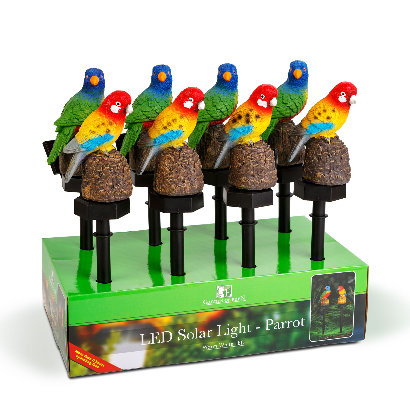 Vneste do svojej záhrady tropickú atmosféru s touto solárnou dekoráciou v tvare papagája! Detailný, pestrofarebný papagáj púta pozornosť nielen cez deň, ale aj v noci, vďaka teplému bielemu LED svetlu v tele.