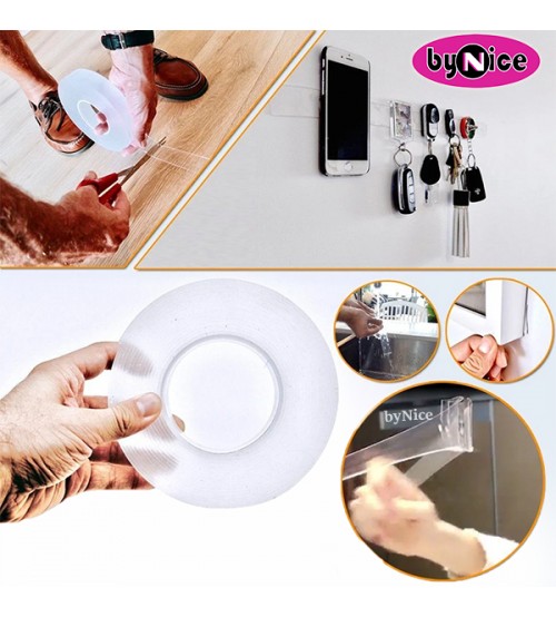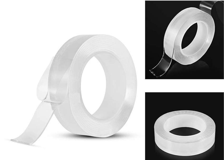 Táto obojstranná lepiaca páska je vyrobená z nanoakrylového gélu, priehľadná a elastická, ľahko sa odstraňuje a nezanecháva žiadne stopy na stene ani na povrchu pripevneného predmetu.